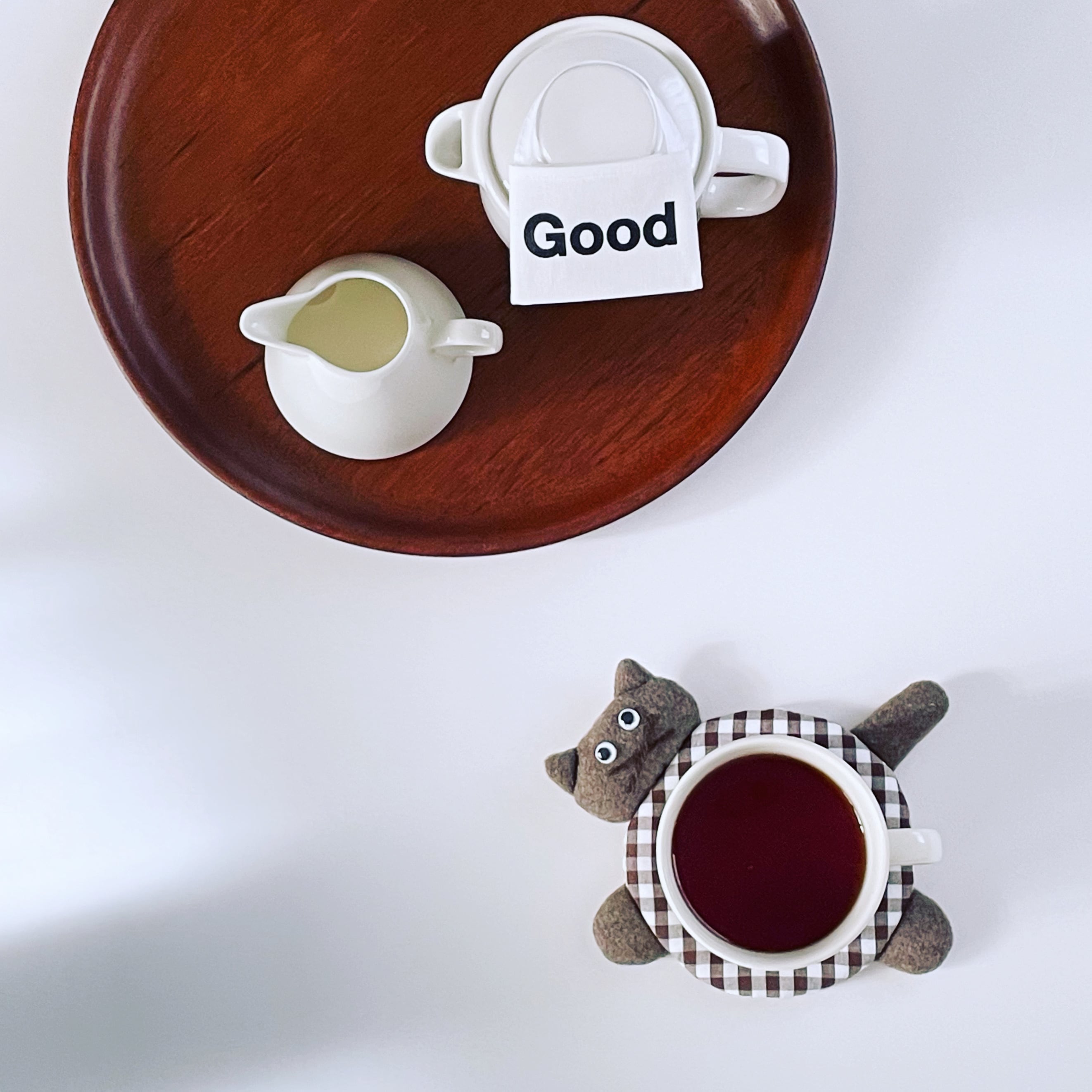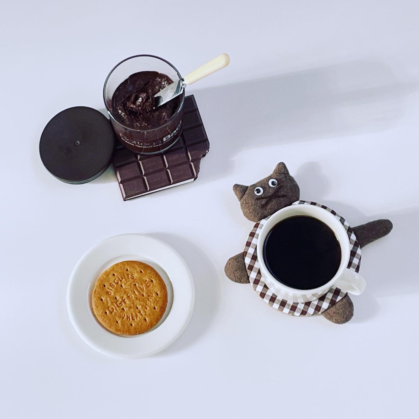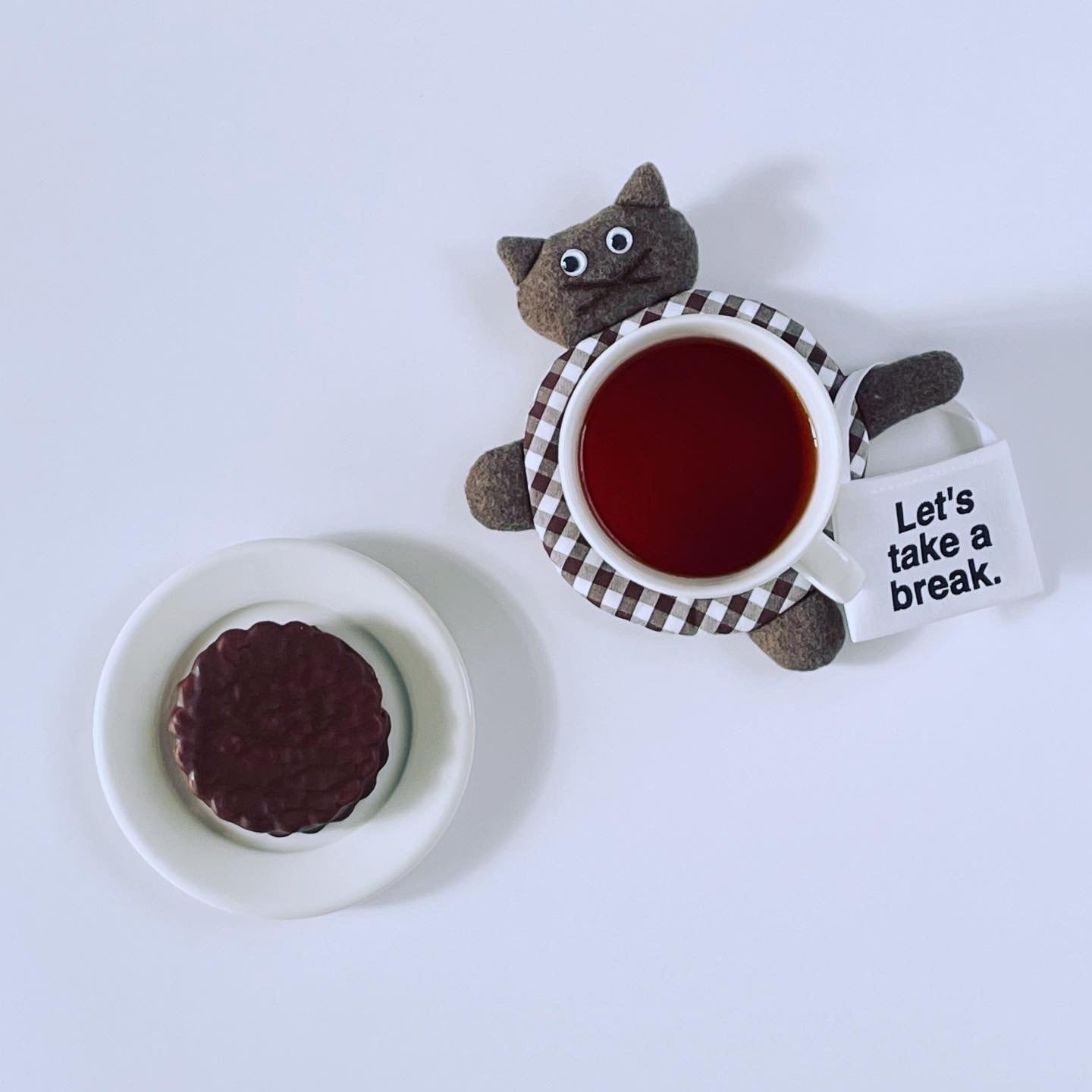 猫の顔や手足尻尾は焦茶色で、丸い部分は焦茶色のギンガムチェックです。