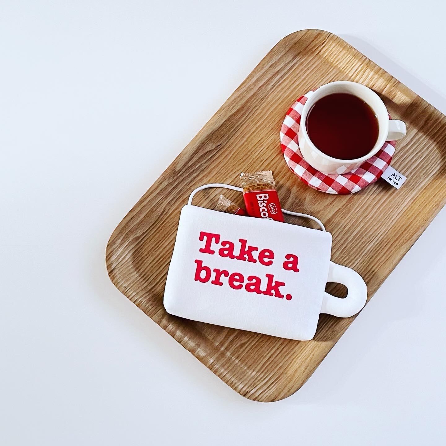 カップは、内側は紅茶かコーヒーが入っているイメージの茶色で、キルティング生地です。