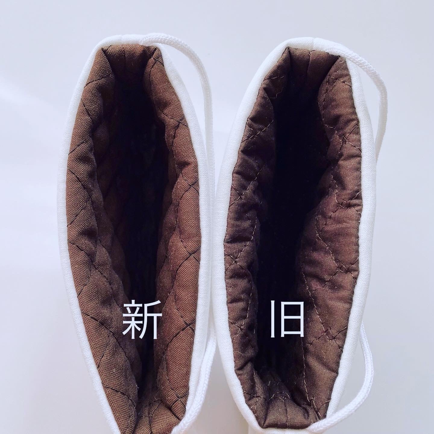 それと前回から内側のキルティングが変更になっています。あまり違いはないのですが、少しだけ明るくなり、布の感じも少しだけ違います。6枚目の写真をご参照ください。以前に購入してくださっている方は、ちょっと違うことをご了承くださいませ。